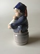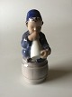 Royal Copenhagen Figur af Dreng på tønde med Horn No. 3689. Designet af Ada Bonfils. Måler 10,5 cm / 4 1/8 in.