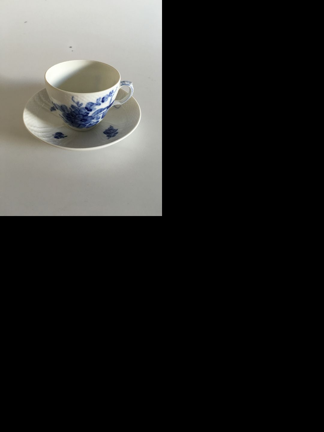 Royal Copenhagen Blå Blomst Svejfet Kaffekop og Underkop No 1549. Måler 7,5 cm x 6 cm