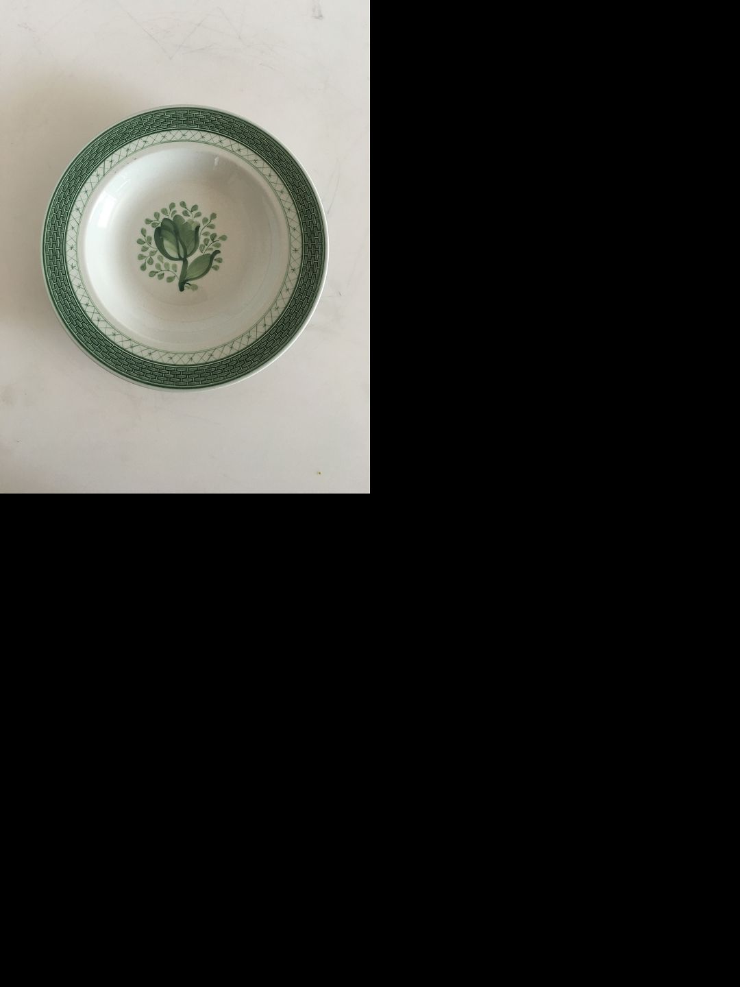 Royal Copenhagen Grøn Tranquebar Dyb Middagstallerken No 947. Måler 23 cm