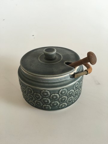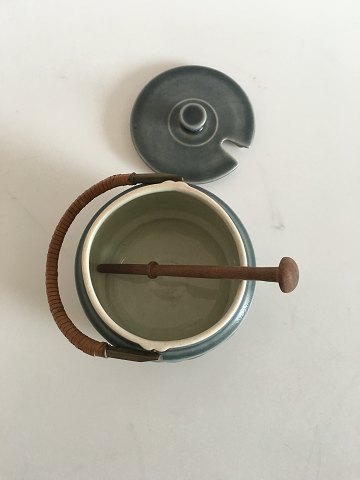 Bing & Grøndahl Kronjyden Blå Azur Låg Potte med Bast Hank. Måler 10,5 cm x 7 cm