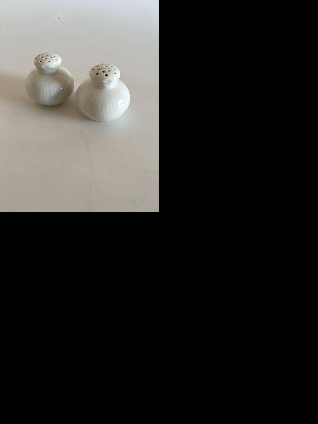 Royal Copenhagen Hvid Halvblonde Salt og Peber Sæt. 6 cm høje. Salt og Peber Bøssen er uden bundprop.