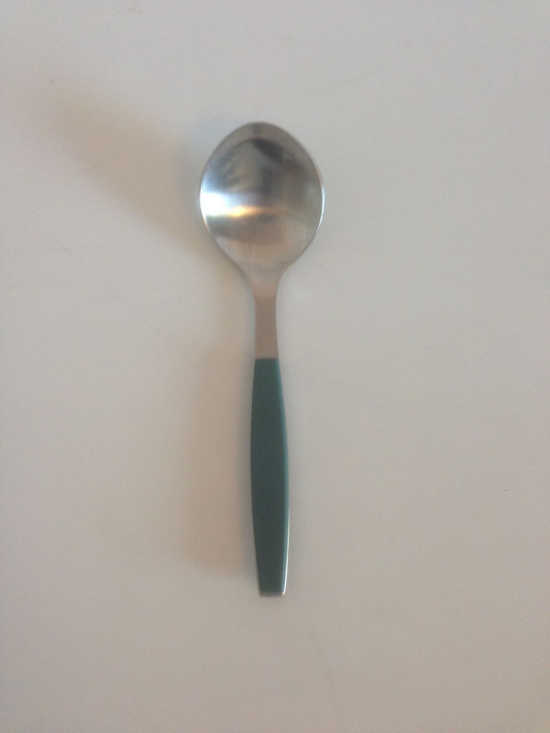 Georg Jensen Stainless Green Strata Soup Spoon. Measures 17 cm / 6 11/16 in.