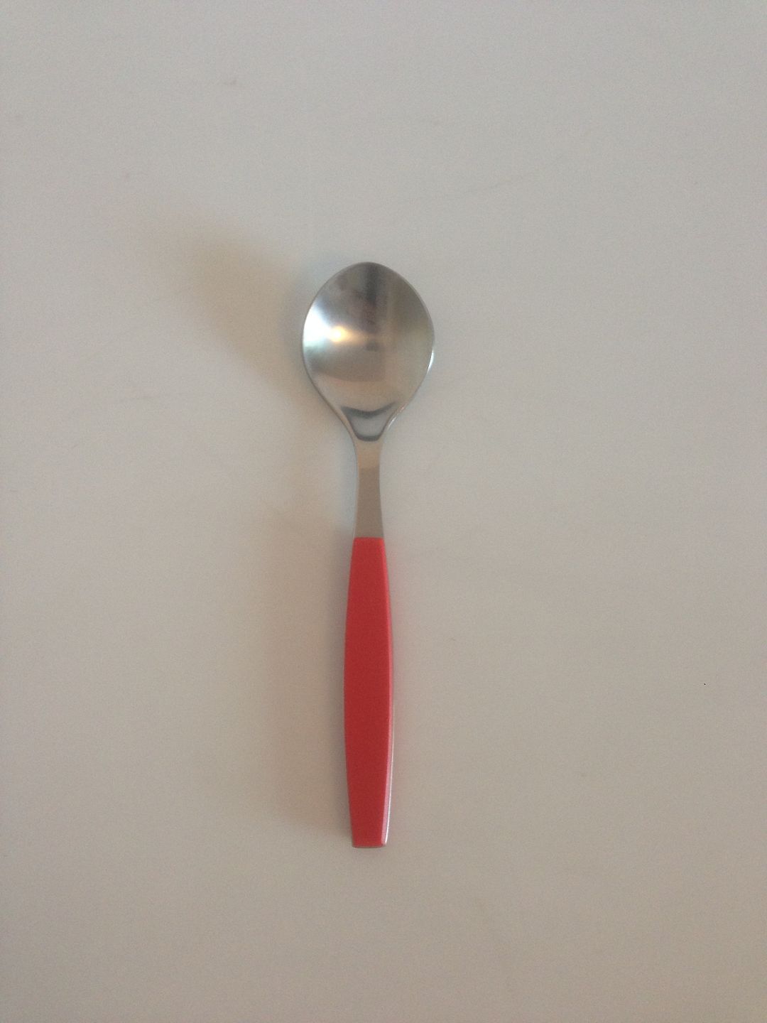 Georg Jensen Stainless Red Strata Dessert Spoon. Measures 16.5 cm / 6 1/2 in.