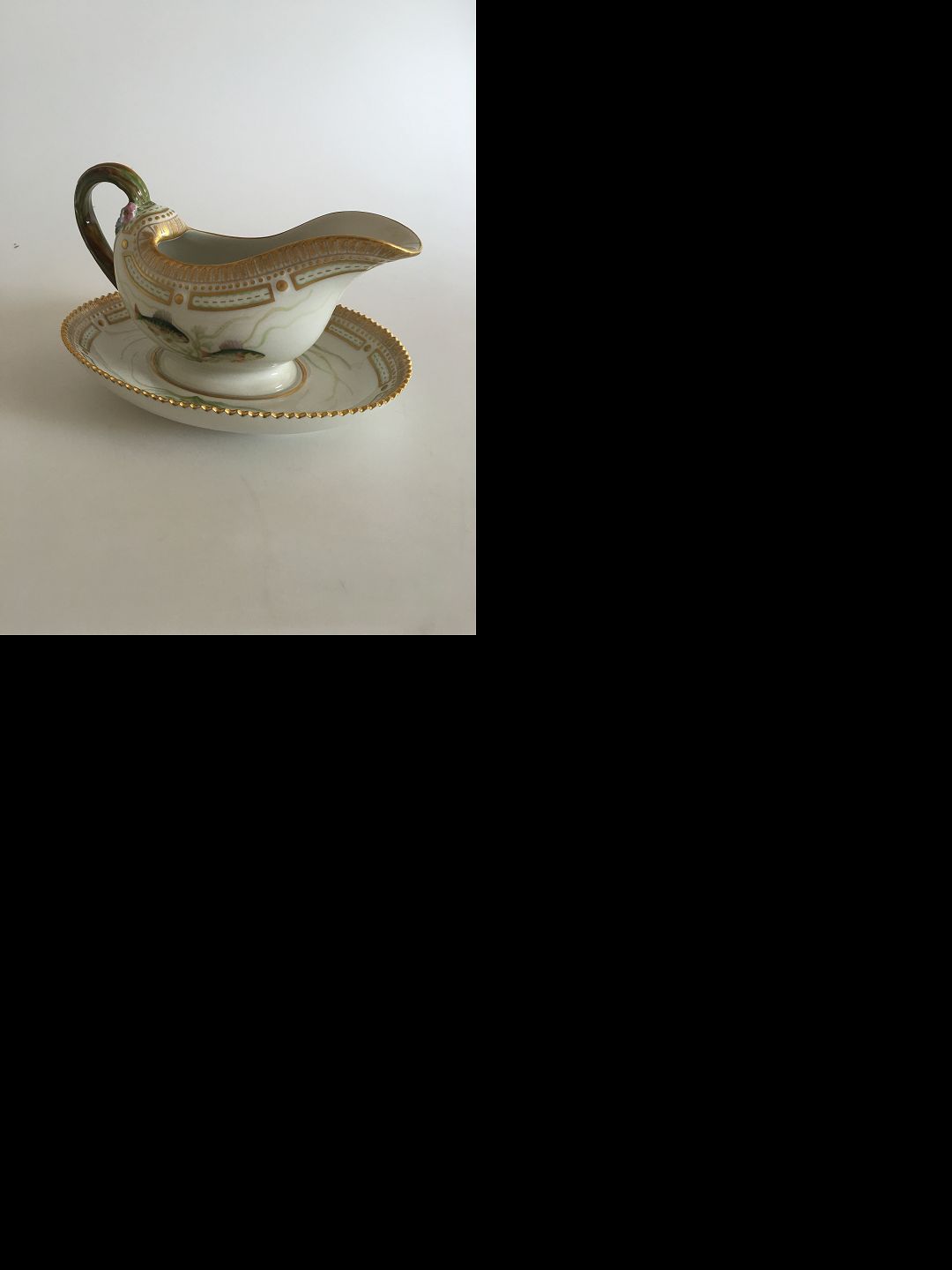 Royal Copenhagen Flora Danica Fish Sauce Boat with attached Underplate No 19/3556. 23 cm x 15 cm (9 1/16" x 5 29/32")