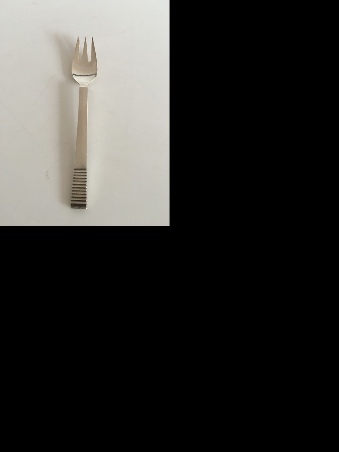 Georg Jensen Sterling Sølv Relief Kagegaffel No 043. Måler 14 cm. Design: Oscar Gundelach-Petersen 1931.