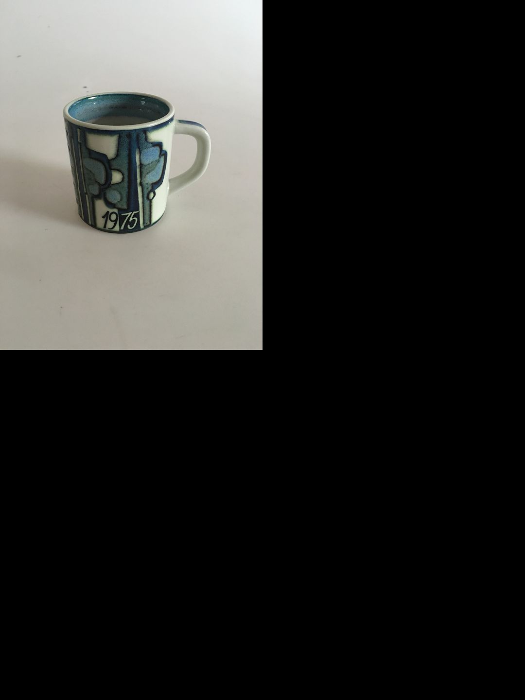 Royal Copenhagen Small Annual Mug 1975. Designed by Bodil Buch. Measures 7.5 cm / 2 61/64 in.