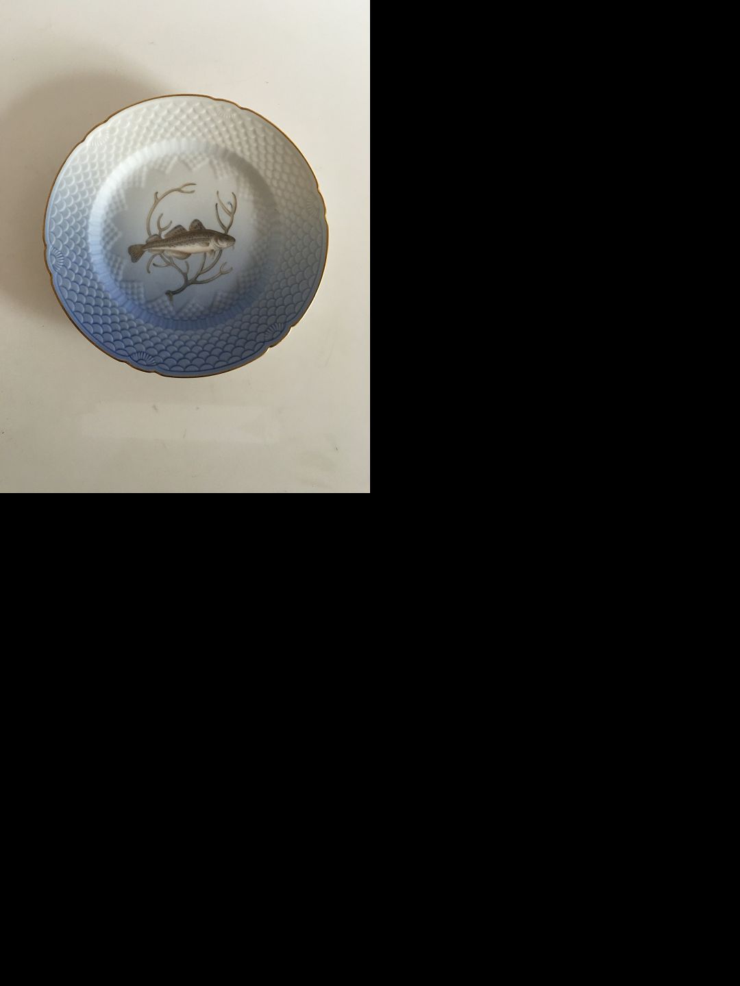 Rare Bing & Grondahl Seagull with Gold Fish Dinner Plate No 25 Cod. Handpainted. 24 cm (9 29/64")