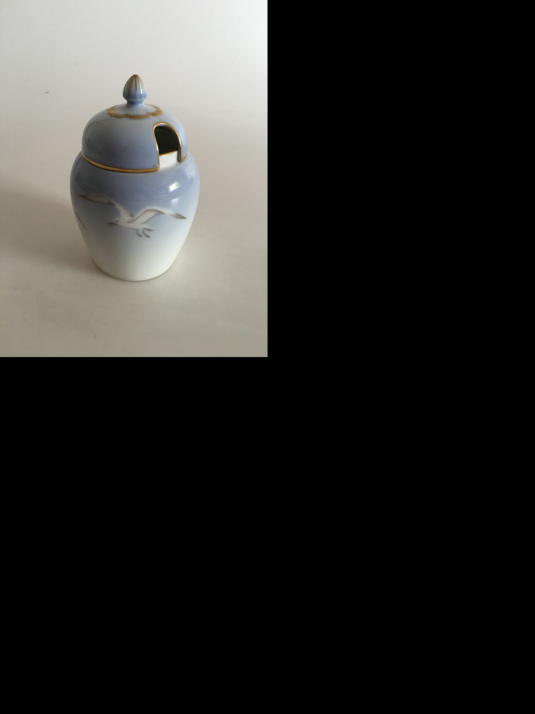 Bing & Grøndahl Måge med Guld Marmelade Krukke med Låg. 12.5 cm høj