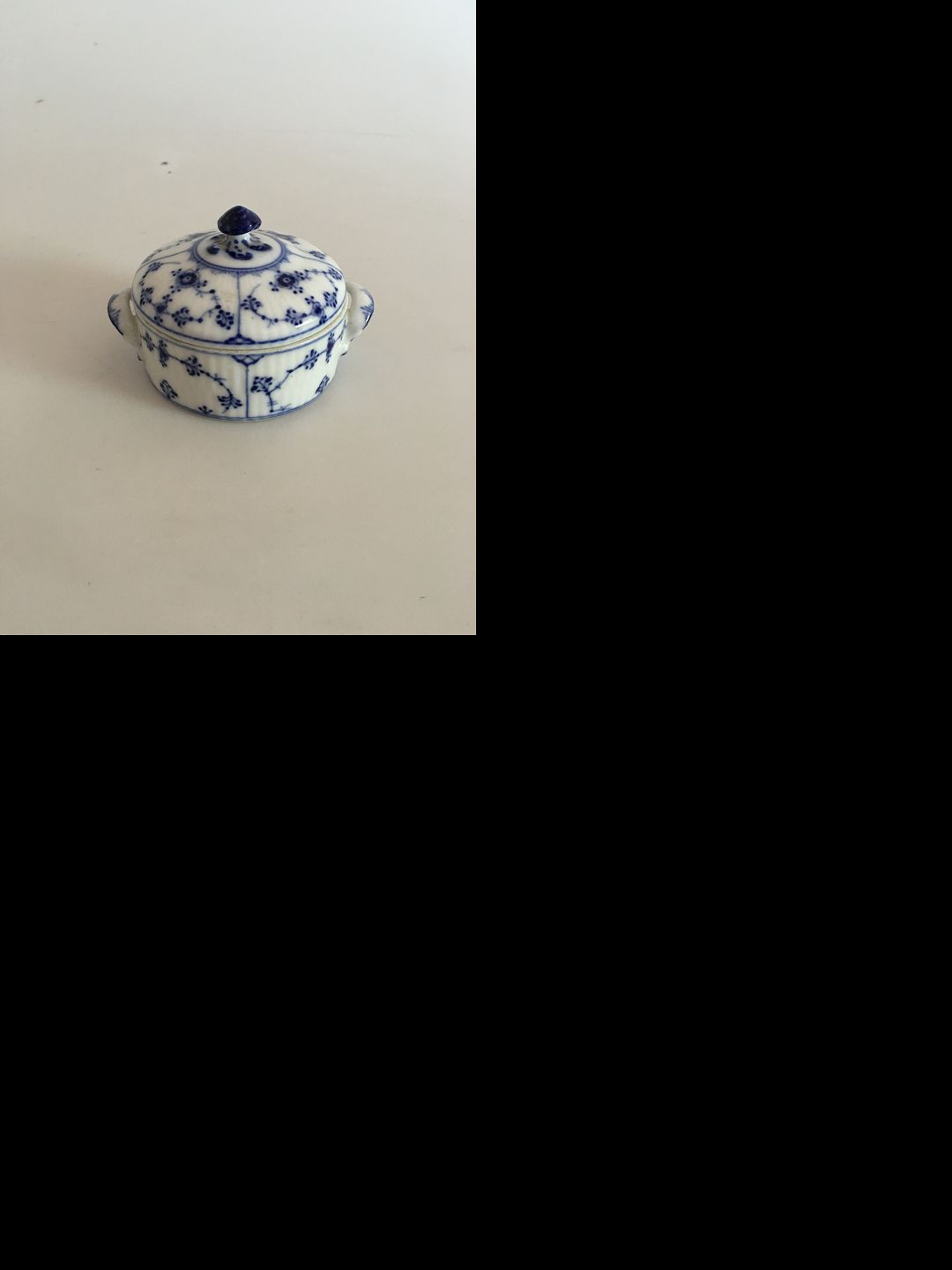 Royal Copenhagen Musselmalet Riflet Smør Dåse med Låg No 398. Måler 8,5 cm x 6,5 cm ( 3 11/32 in. x 2 9/16 in. )