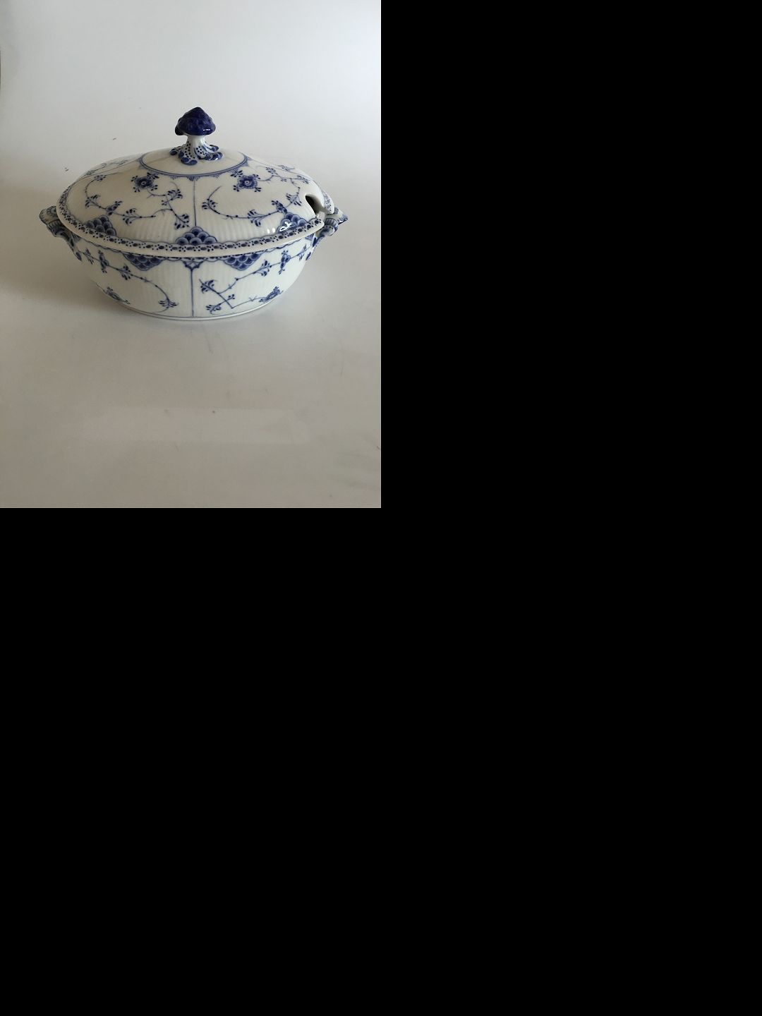 Royal Copenhagen Blue Fluted Half Laced Oval Tureen No 595. 25.5 x 19 cm (10 3/64" x 7 31764")