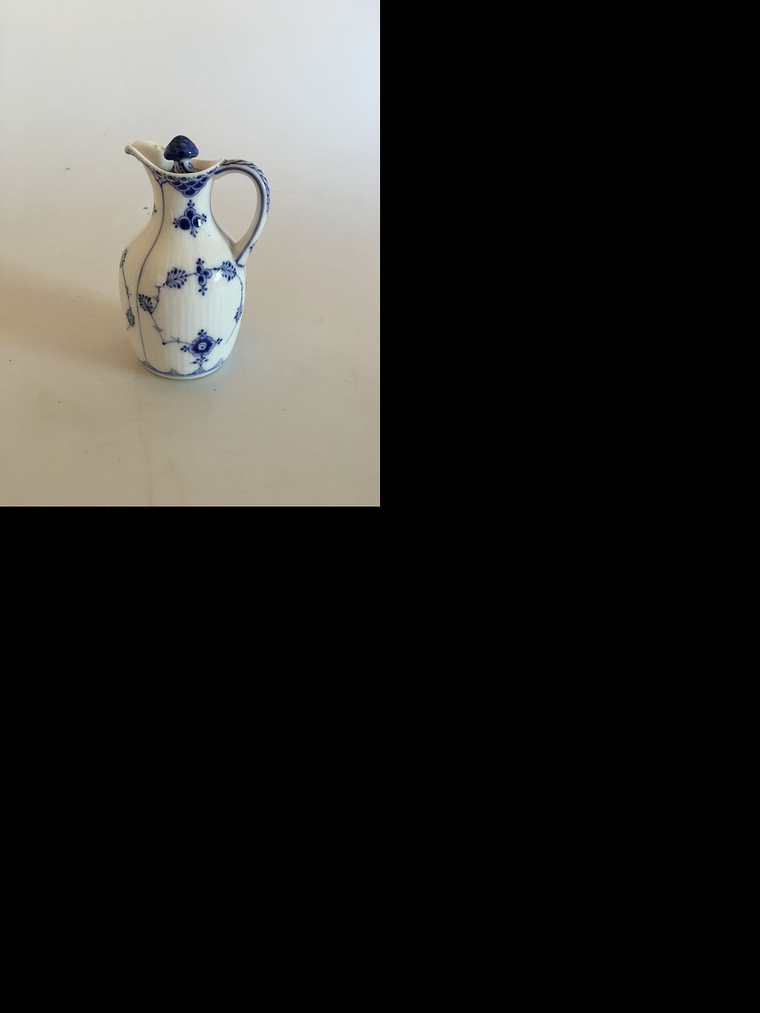 Royal Copenhagen Blue Fluted Half Lace Vinegar Pitcher No 1180. 13.5 cm tall. The pitcher has a chip, see picture.