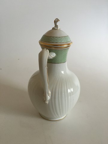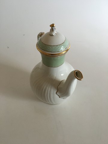 Royal Copenhagen Green Curved Coffee Pot with Gold No 1794. Measures without lid 21 cm tall. (8 17/64")