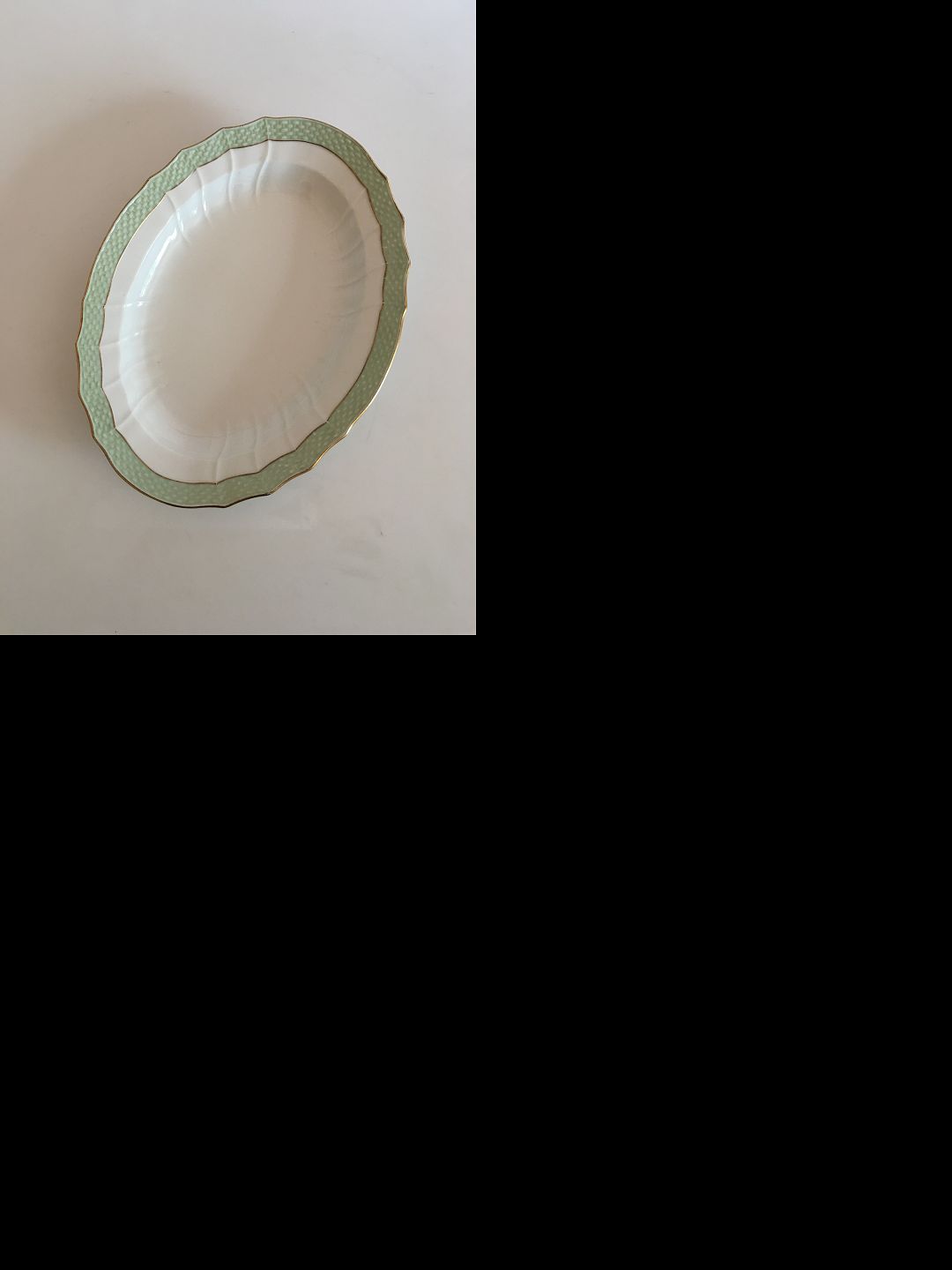 Royal Copenhagen Green Curved with Gold Oval Platter No 1555. 32 cm (12 19/32")