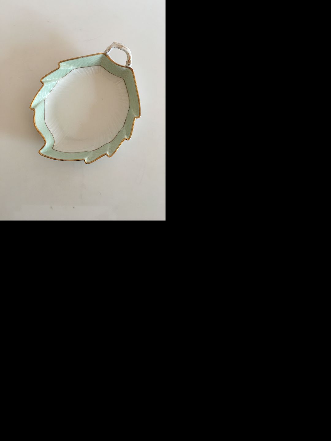 Royal Copenhagen Grøn Svejfet med Guld Bladformet Assiette No 1866. 19.5 cm. Guldet har en smule slitage.