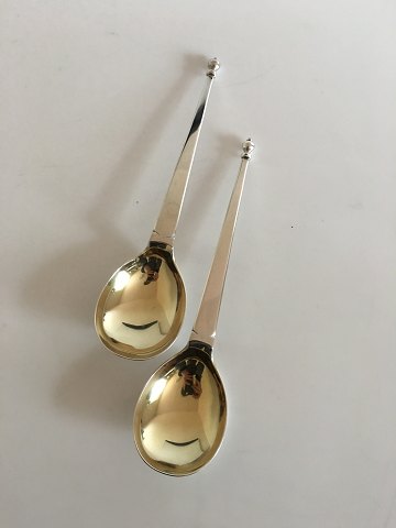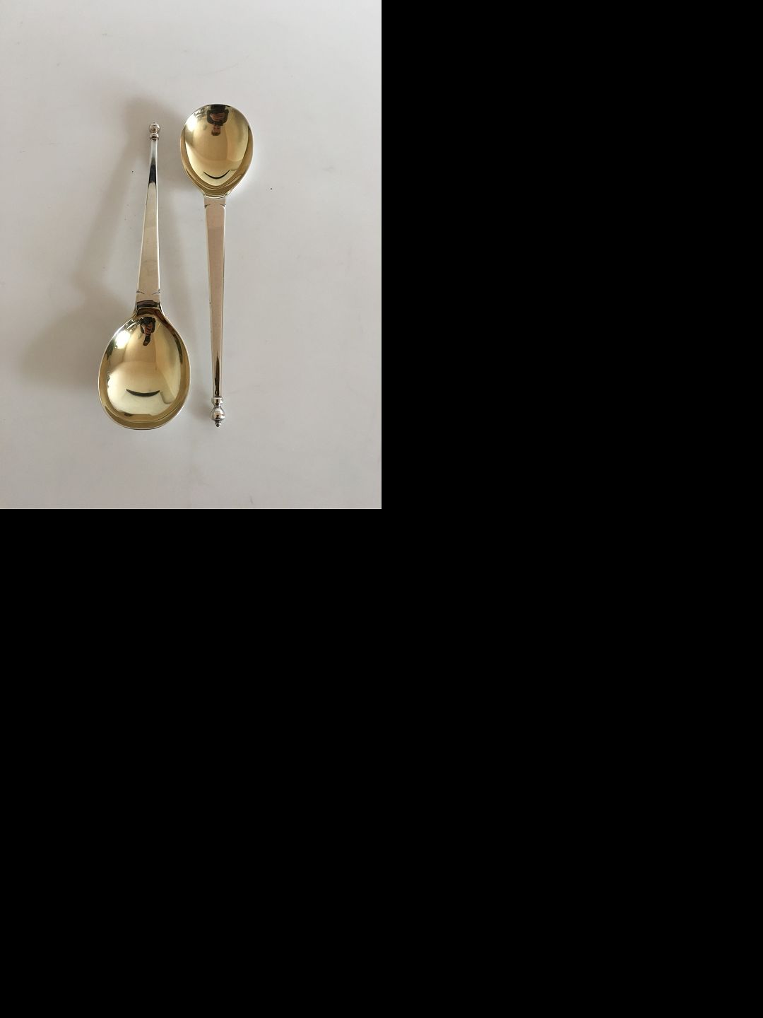 Sæt af to serveringsskeer i Sølv med forgyldt endestykke. Med engelske sølvstempler. 20 cm.