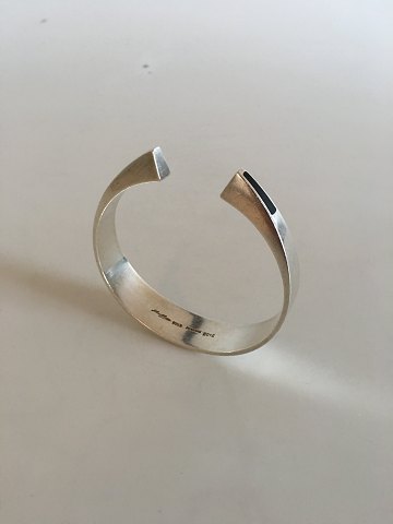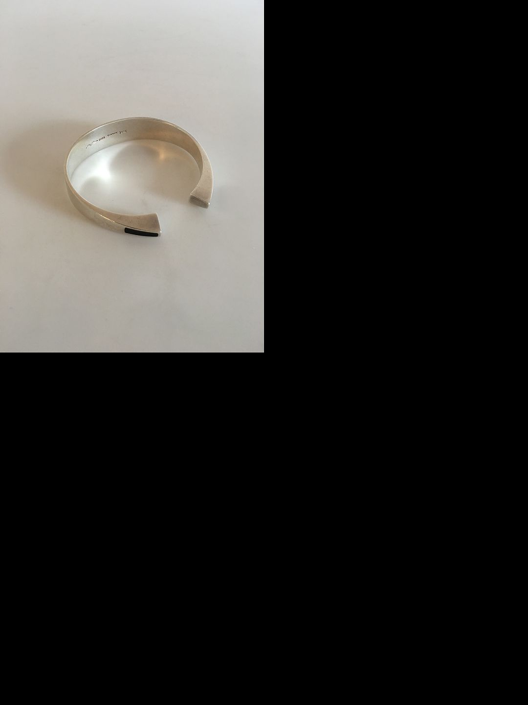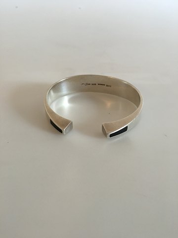 Hans Hansen Sterling Sølv Armring med Sort Indlæg No 201E. Indvendig mål ca. 20 cm. Vejer 64 g.