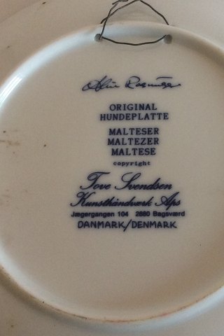 Tove Svendsen Original Hundeplatte Danmark Malteser, Maltezer, Maltese.