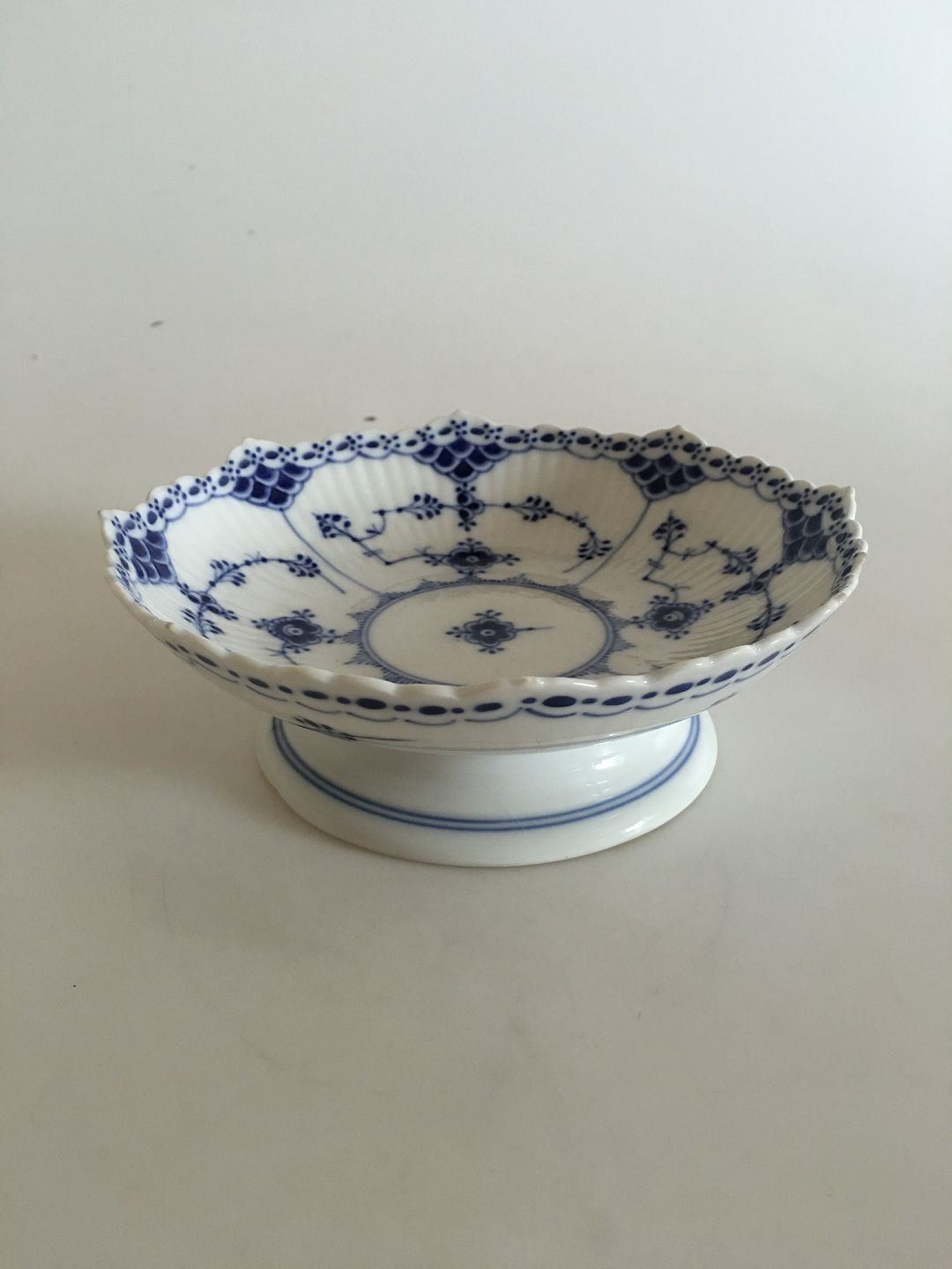 Royal Copenhagen Blue Fluted Half Laced Cake Bowl on Short Foot No 511. The bowl has a small chip on the side of the bowl (see picture)