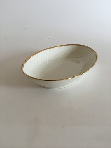 Bing & Grøndahl Aakjær Oval Kageskål No 39. 24 cm. Creme med guldkant. I fin stand.