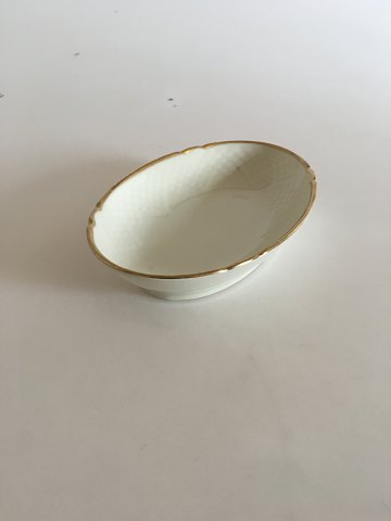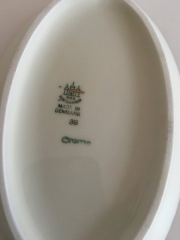 Bing & Grøndahl Aakjær Ovalt Kagefad No 38. 17.5 cm. Creme med guldkant, i fin stand.