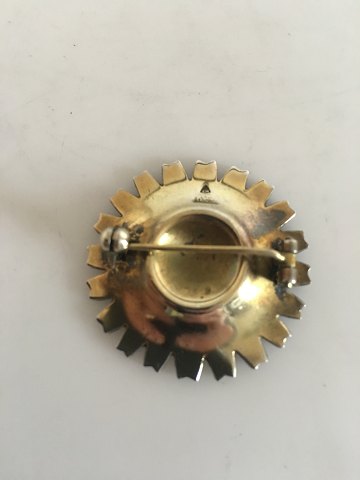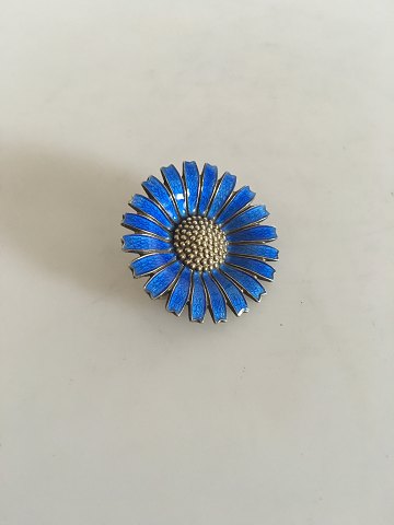 Anton Michelsen Forgyldt Sølv Margueritte Broche med Blå Emalje. 3.3 cm Ø. Vejer 9 g.