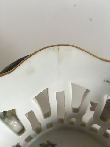 Royal Copenhagen Fuld Saksisk Blomst Gennembrudt Oval Skål No 1581. Skålen har en enkelt skade (se billede). Måler 25 cm x 9 cm høj.