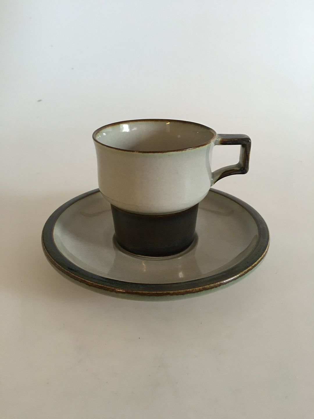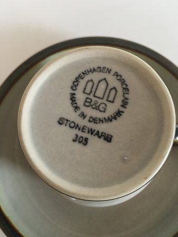 Bing & Grøndahl Stentøj Tema Kaffekop og Underkop No 305. Måler 7,5 cm høj.