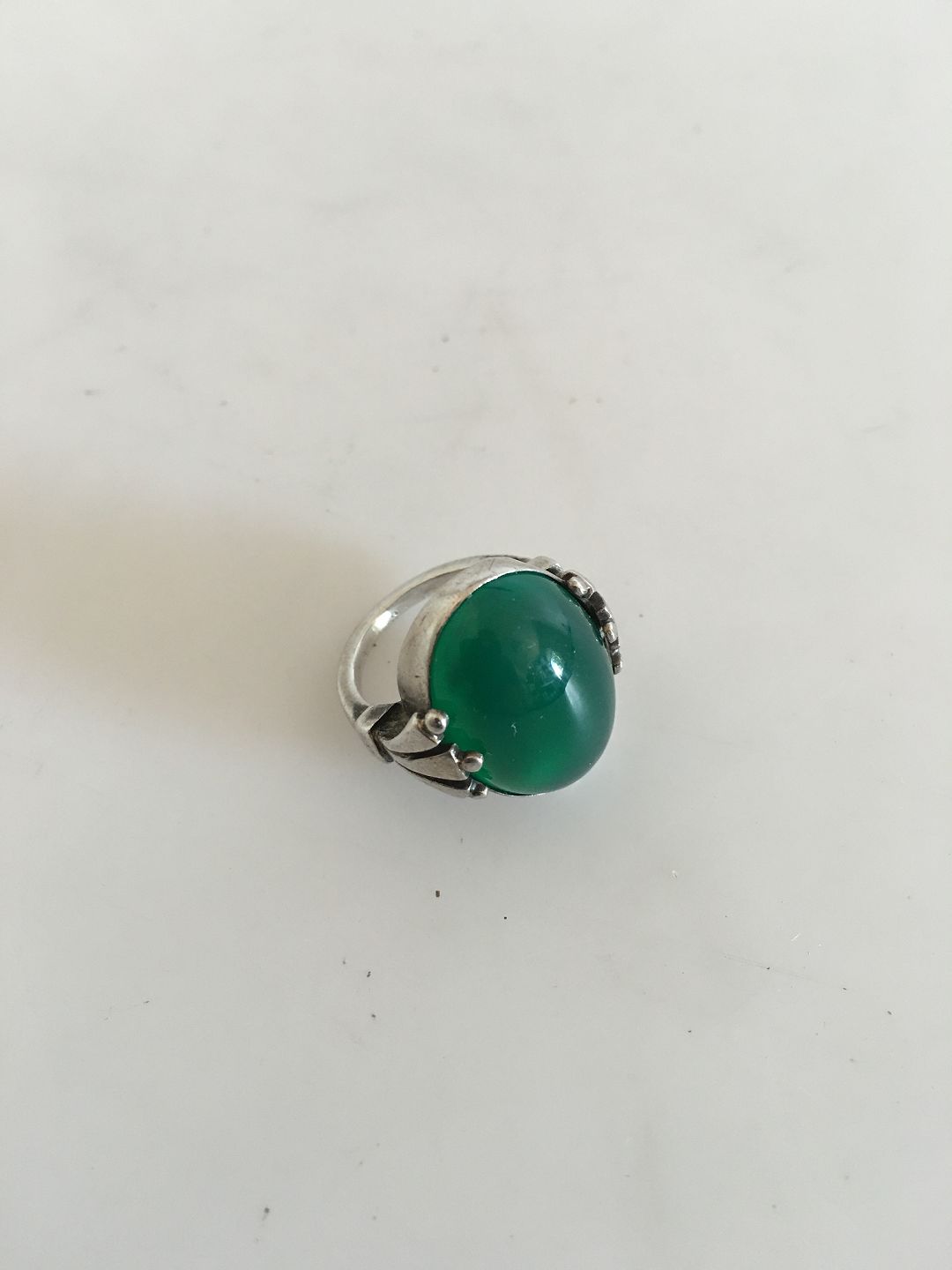 Georg Jensen Sterling Silver Ring No 51 with Green Agate. Ring Size 44 / US 3. Weighs 6 g / 0.20 oz. From after 1945.