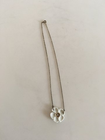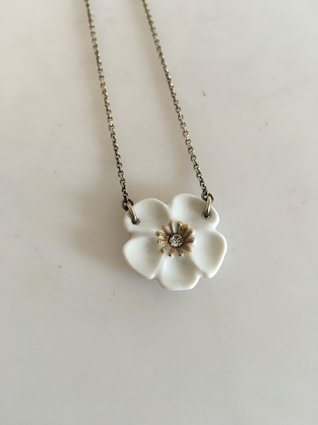 Royal Copenhagen Halskæde med Blomstervedhæng i Porcelæn med Similisten .33 cm L.