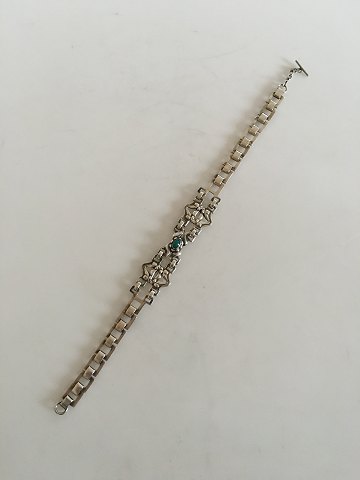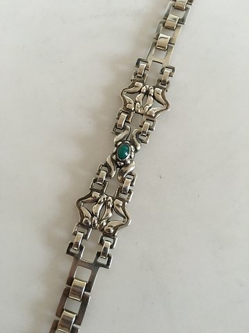 Georg Jensen Early Silver Choker / Necklace with Green Agate. From 1904-1908. There is 7 and 8 links on each side of the large jewelry piece. Measures 30 cm / 11 13/16 in. Weighs 33 g / 1.15 oz.