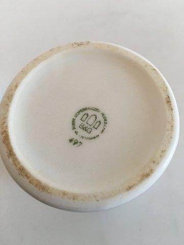 Bing & Grøndahl Laurbær Krydderikrukke No 497 fra Apotekerserien designet af Bo Bonfils i 1970'erne. 11 cm H.