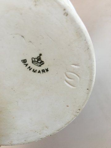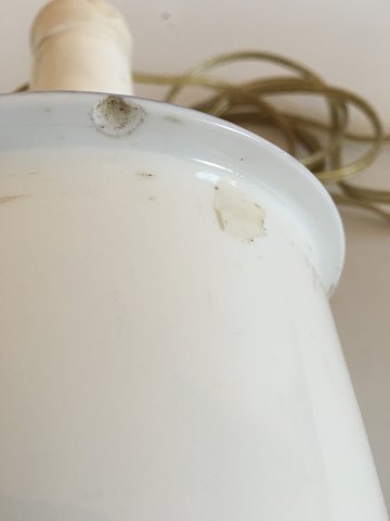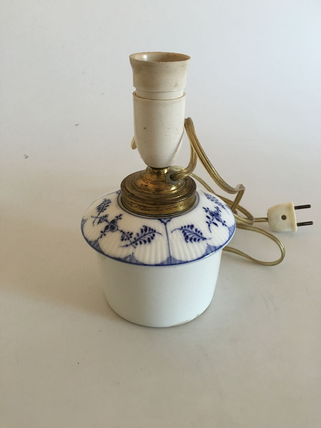 Royal Copenhagen Musselmalet Riflet Lampe Indsats til Vase. Indsatsen bredeste omkreds er 35.5 cm. Der er lille skår i den som vist på billedet men dette ses ikke når først lampen er sat i hvor den skal side.
