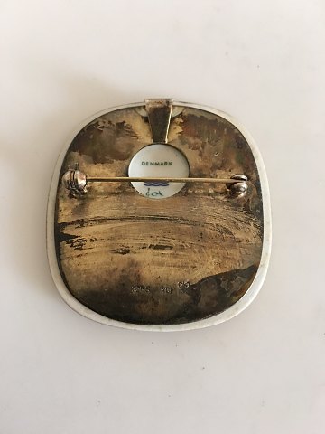 Royal Copenhagen Flora Broche / Vedhæng i Porcelæn og Sterling Sølv . 4.5 x 4 cm.