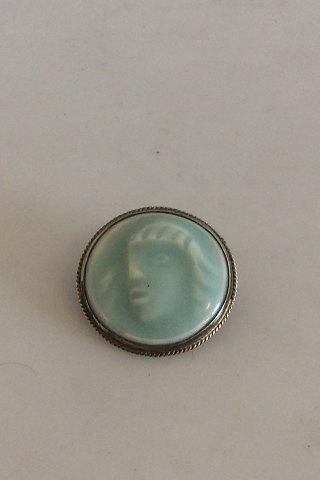 Royal Copenhagen Jais Nielsen Brooch from Dragsted Silversmithy in Celedon Glaze.