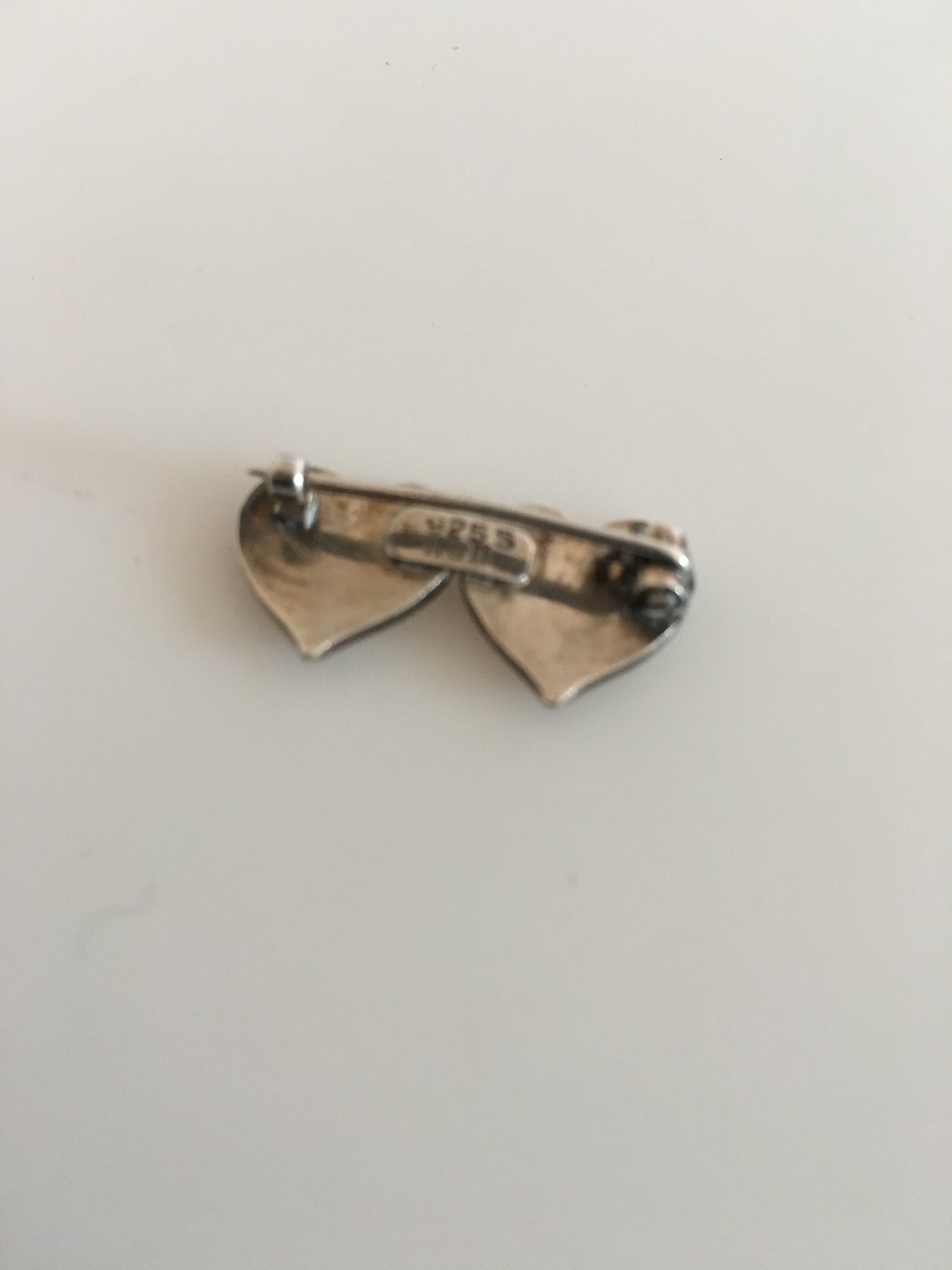 Hans Hansen Sterling Silver Two Hearts Brooch. Measures 2.3 cm / 0 29/32 in. Weighs 3.2 g / 0.11 oz.