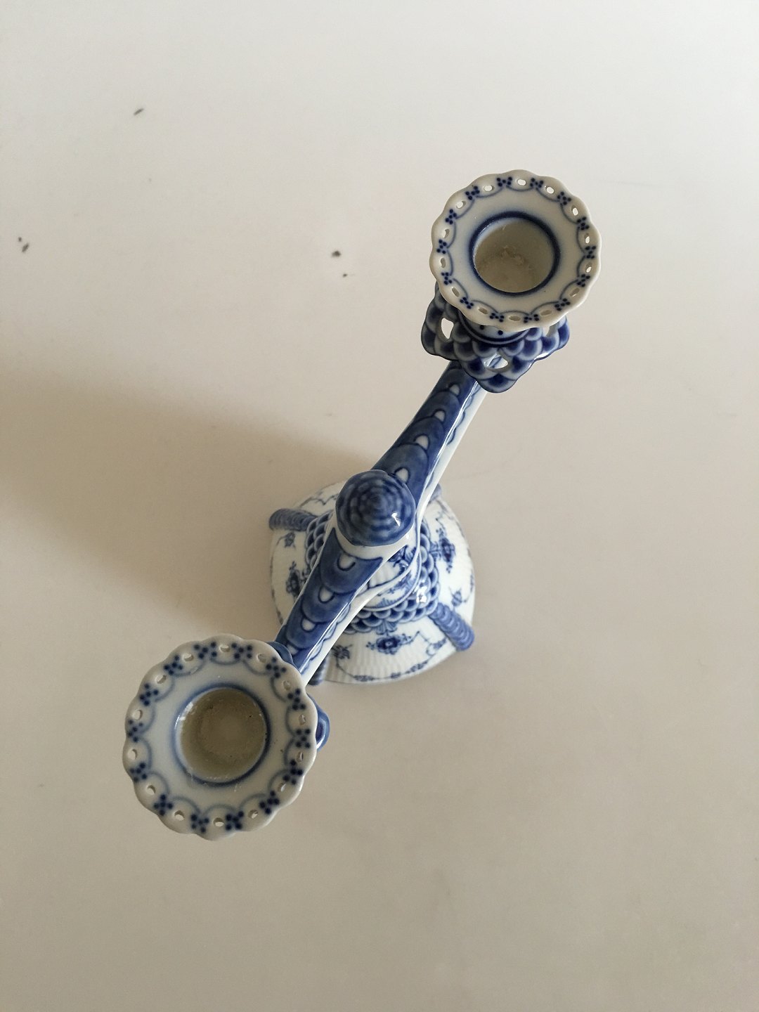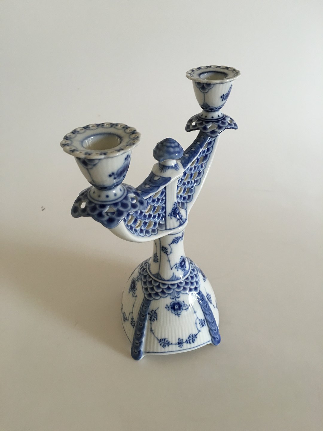 Royal Copenhagen Musselmalet Helblonde To Armet Lysestage No 506 / No 1169 25 cm Høj. I fin stand.