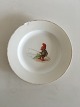 2. Tallerken 20.5 cm. Nisse med fiskestang. Guldet er en del slidt. Tallerkenen har et skår langs kanten.
