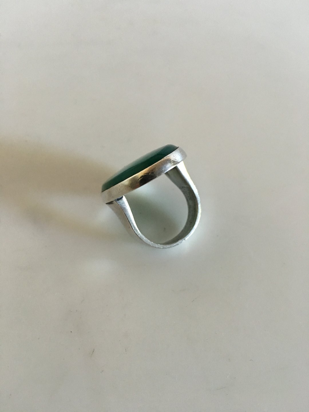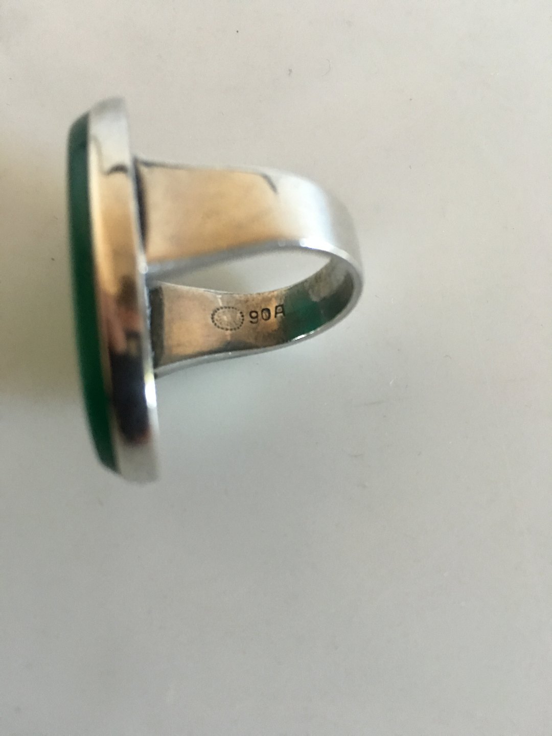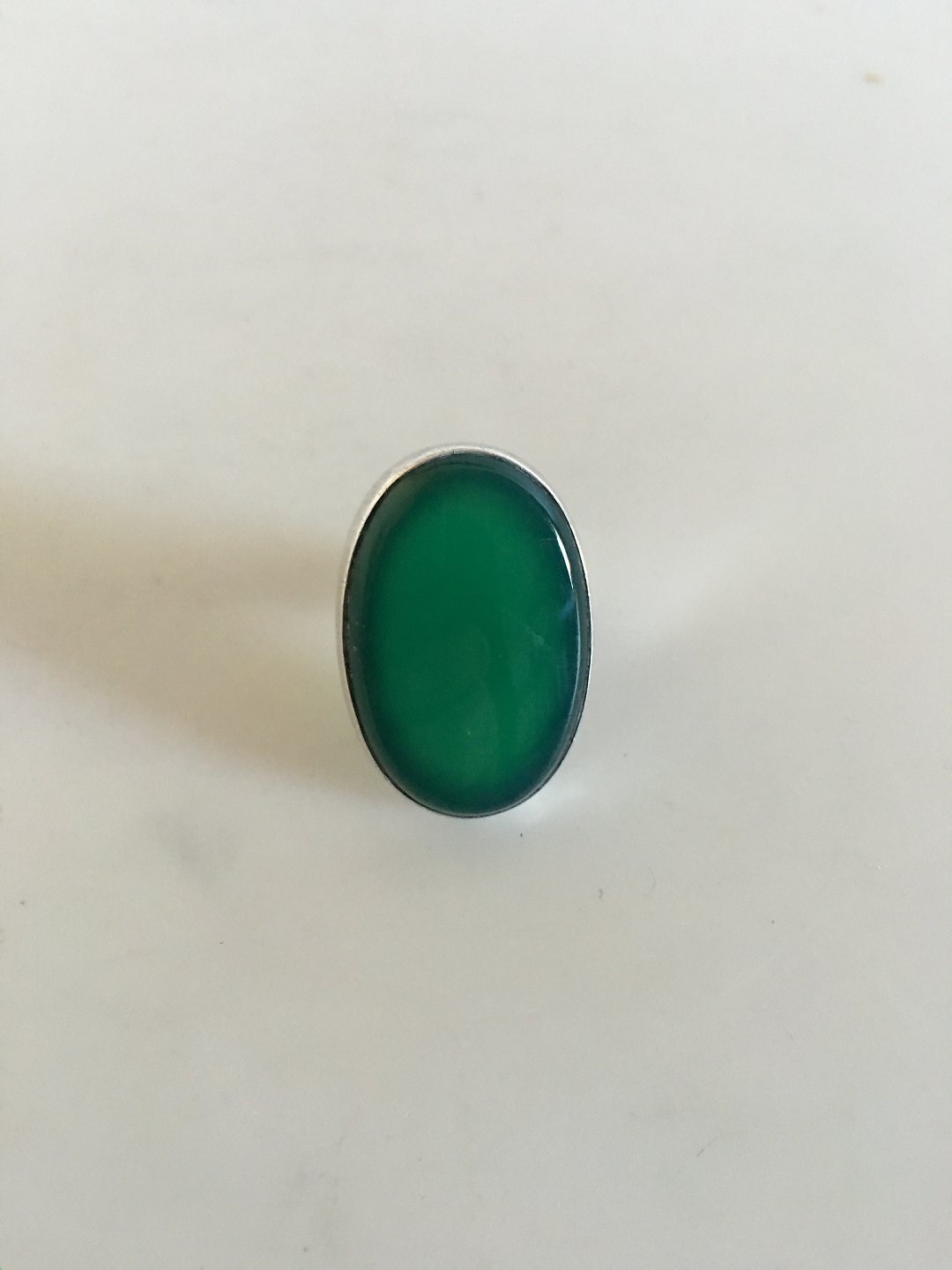 Georg Jensen Sterling Sølv Ring No 90A med Grøn Agat. Fra efter 1945. Sten måler 3 cm. Ring str. 55.