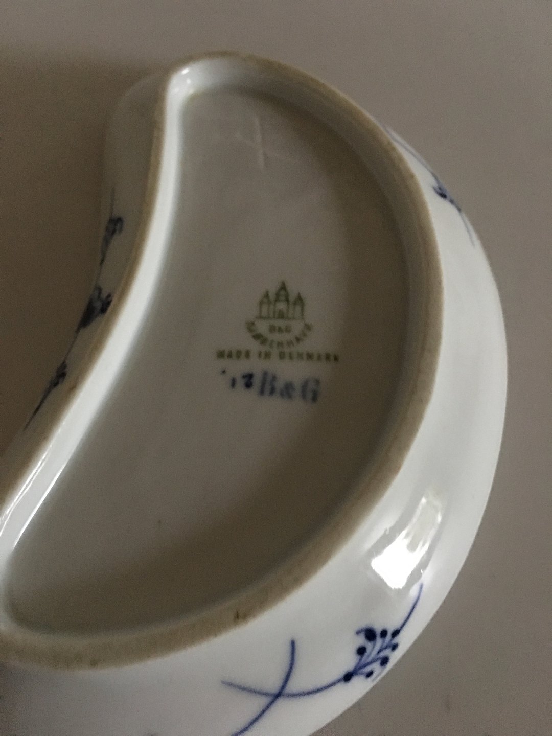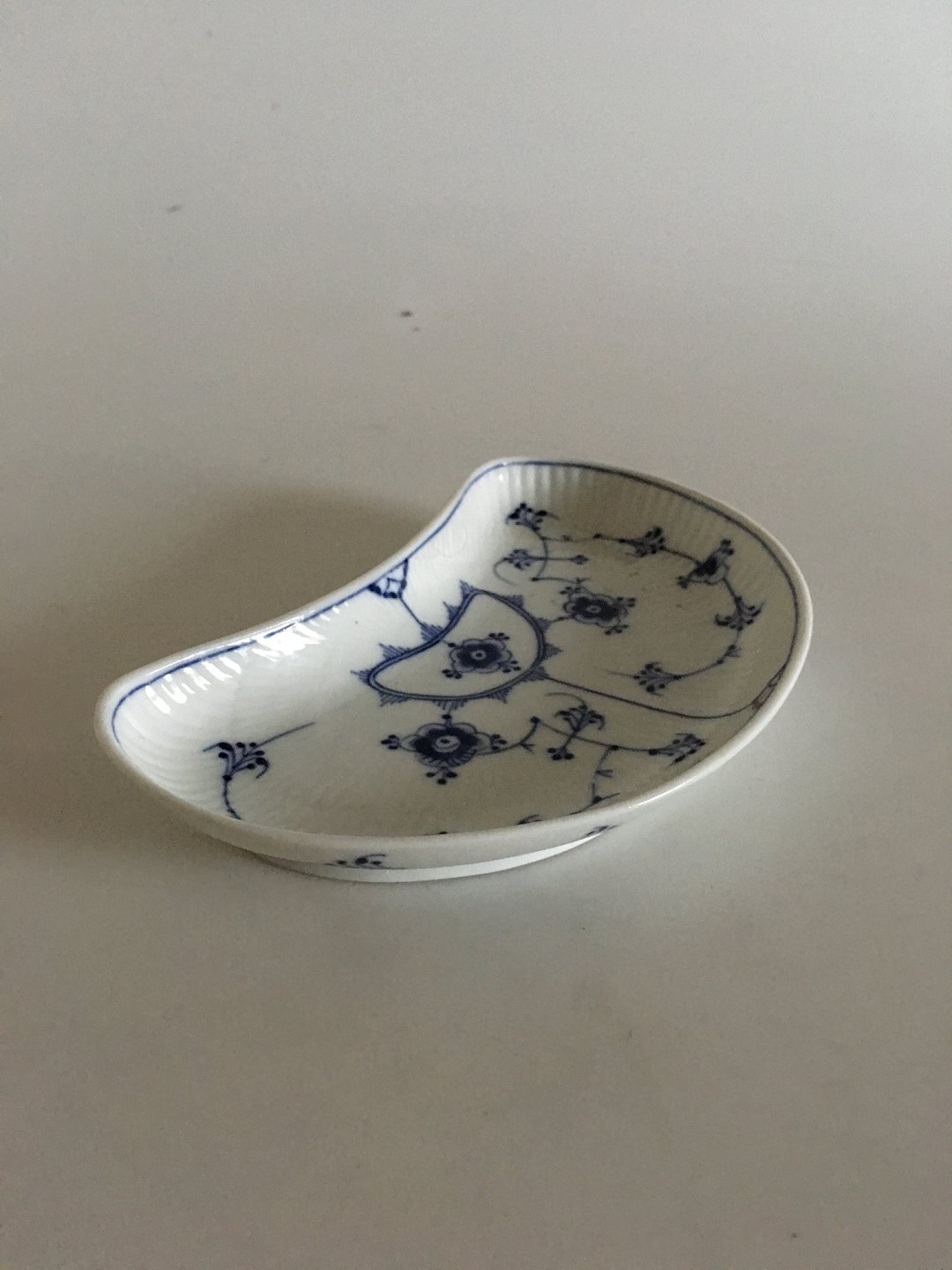 Bing & Grøndahl Blåmalet Musselmalet Riflet Halvmåneformet Asiet. 16.5 cm L.
