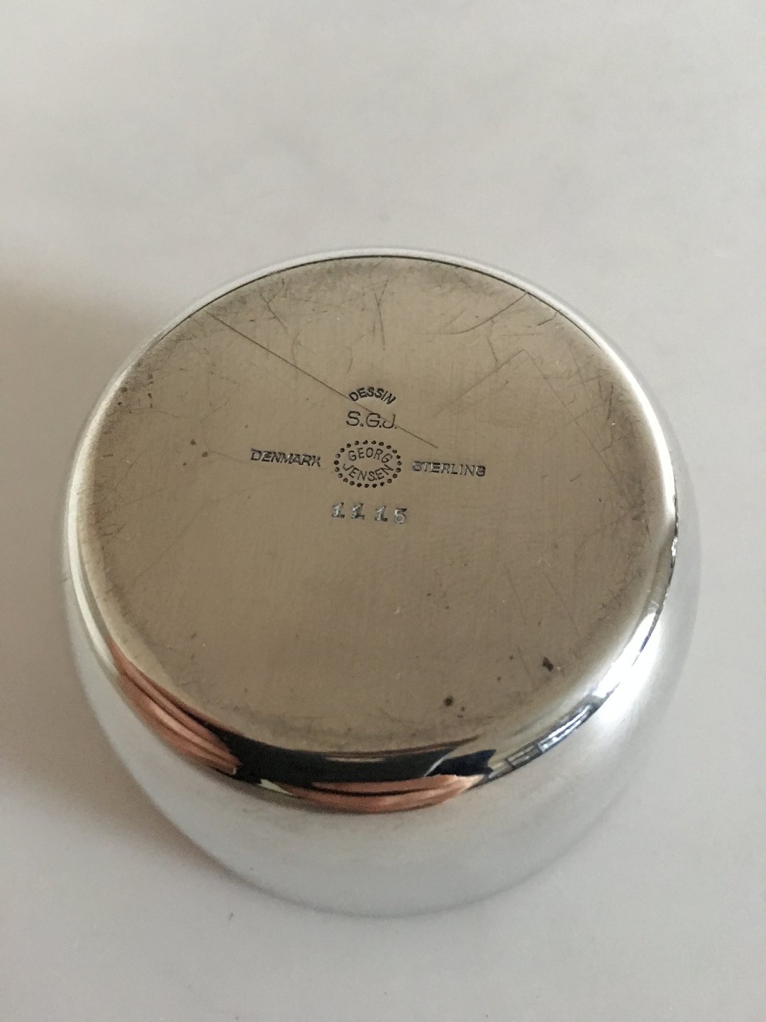 Georg Jensen Sterling Silver Soren Georg Jensen Measuring Cup No 1115. 3.1 cm tall (1 7/32"). 6 cm dia (2 23/64"). Weighs 57 grams (2.00 oz).