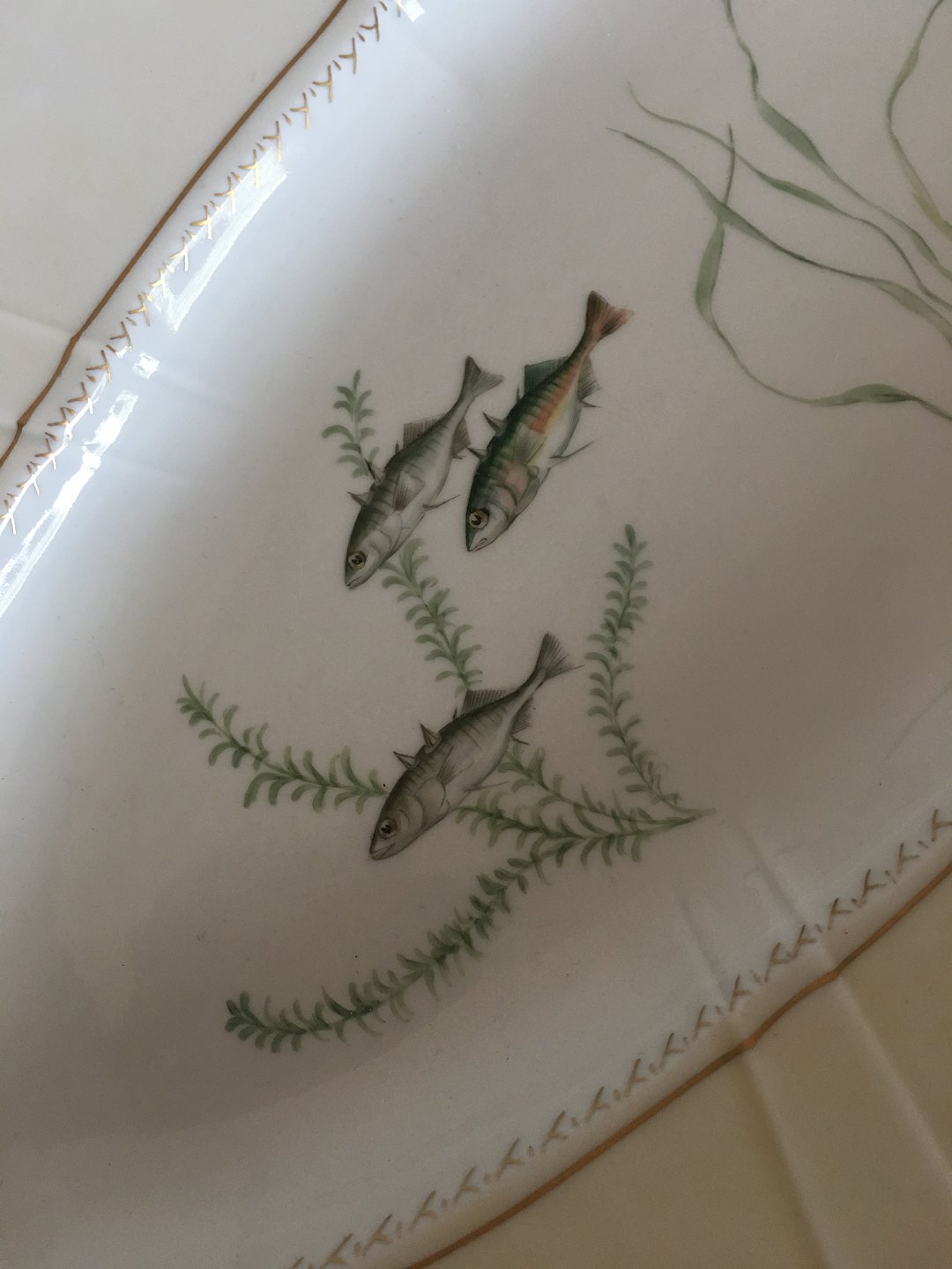Bing & Grøndahl Dumas Fiskefad No 13A med Laks og Hundestejle . 68.5 cm L. I meget fin stand.