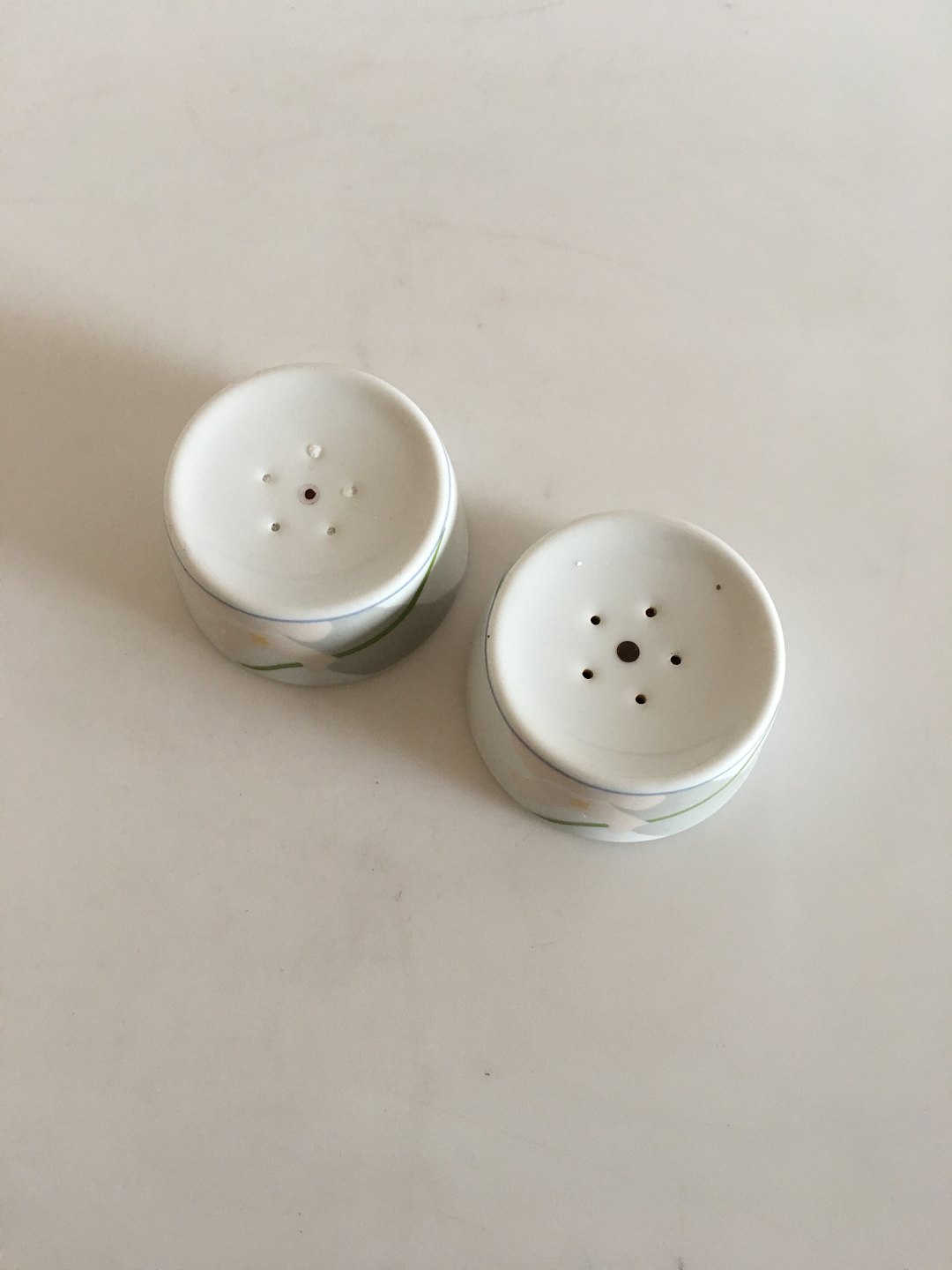 Bing & Grøndahl Grey Orchid Salt and Pepper Set. 6 cm dia. 3.5 cm H.
