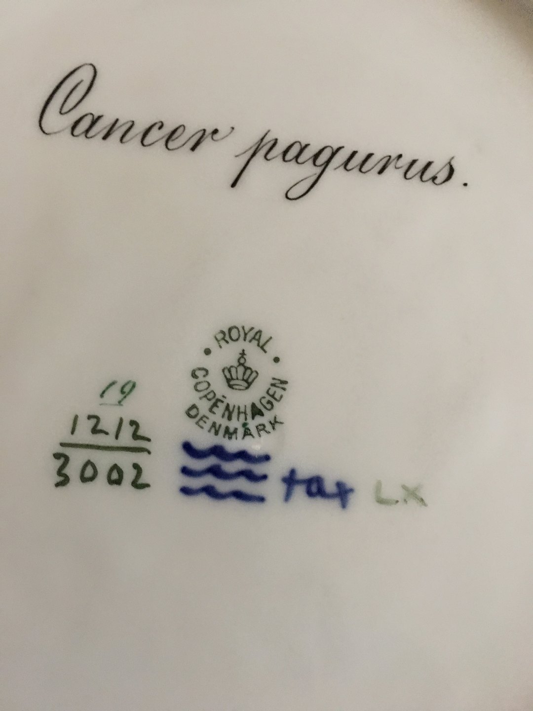 Royal Copenhagen Blue Fish Plate with Gold No 1212/3002. With Cancer Pagurus. 23 cm (9 1/16"). In perfect condition..