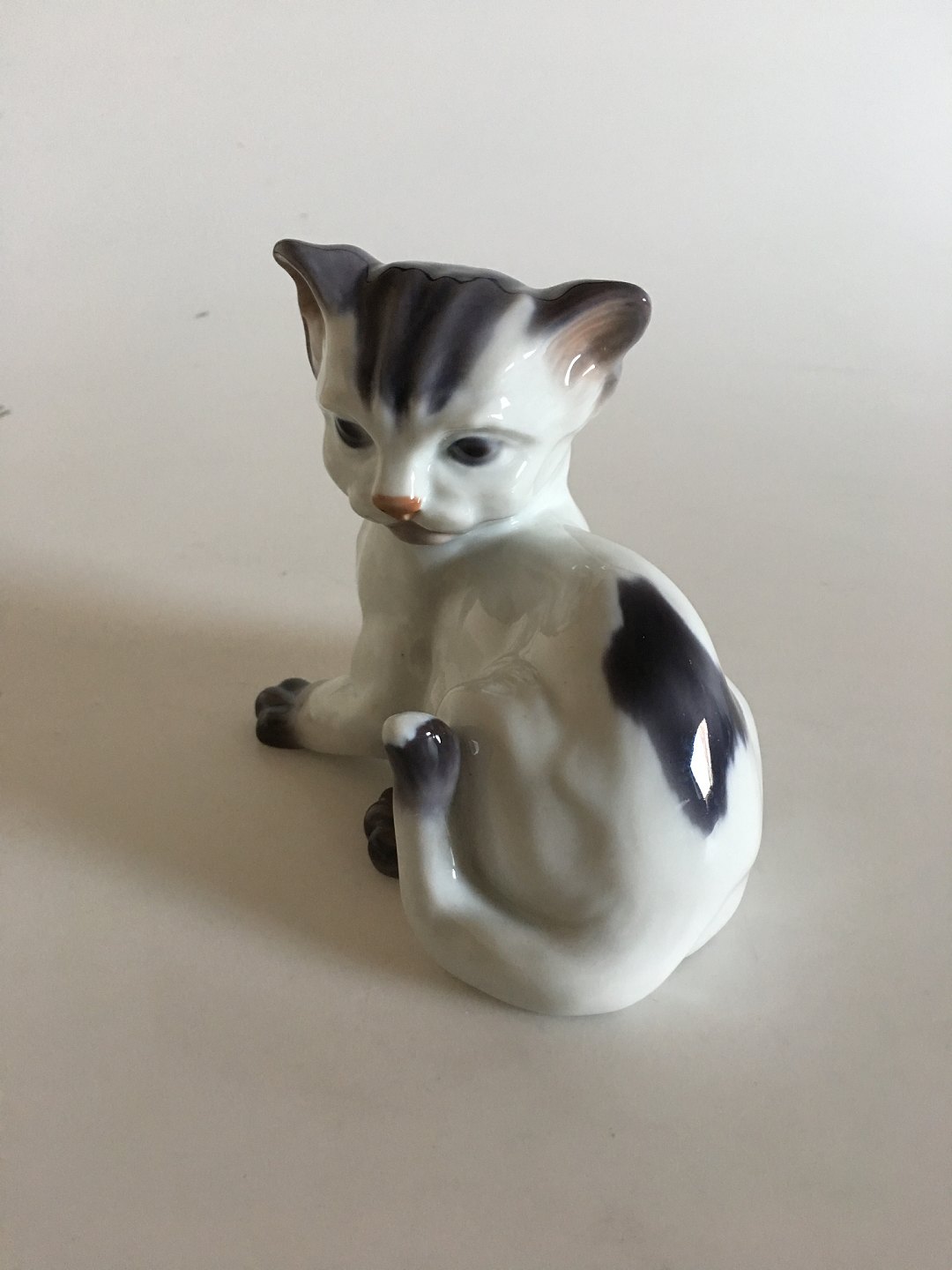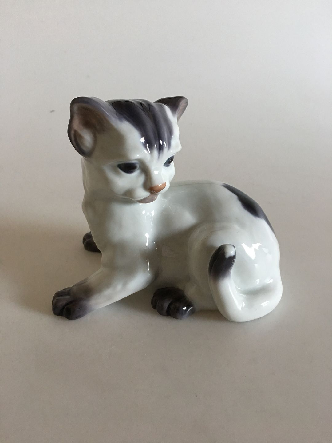 Lyngby Porcelain Figurine of Cat. 11.5 cm H (4 17/32"). 12.5 cm L (4 59/64").
