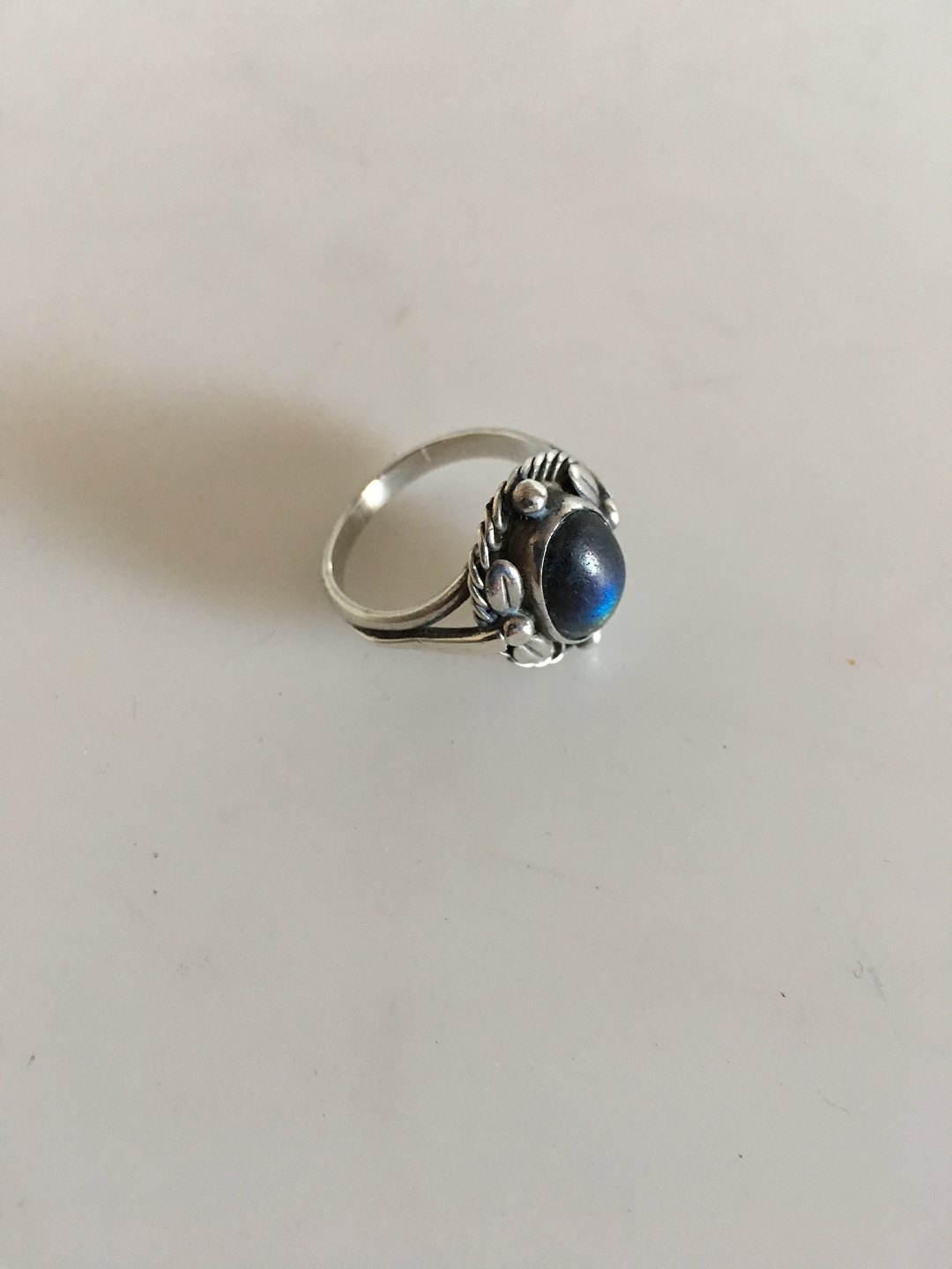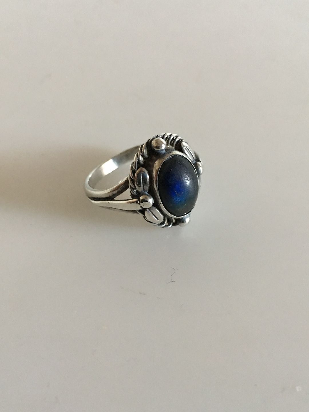 Georg Jensen Sterling Sølv Ring No 1 med Mat Changerende Blå Sten. Fra 1932-1944. Ringstørrelse 57. Vejer 4,9 gram