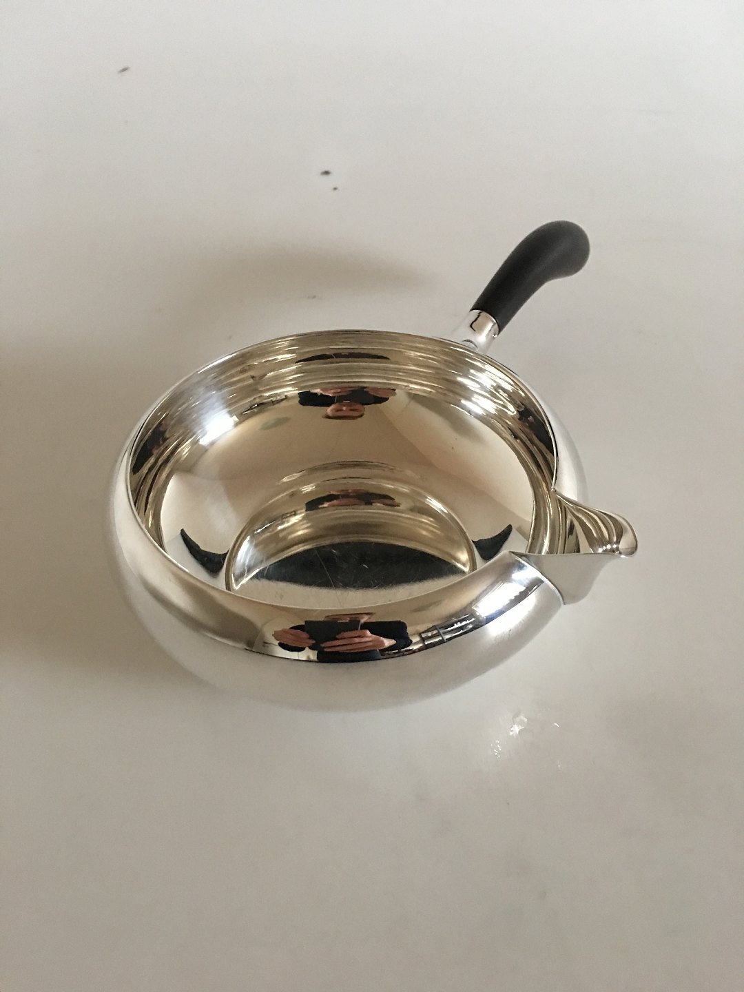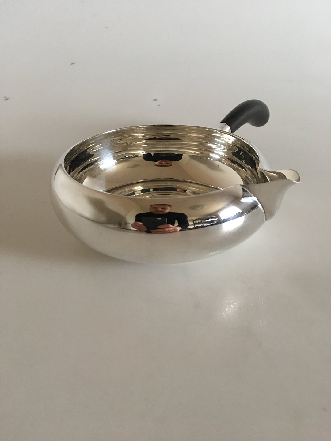 Svend Toxværd Silver Sauce Bowl with Wooden Handle. Measures 14 cm dia (5 33/64"). The Handle measures 10 cm L (3 15/16"). In fine condition.