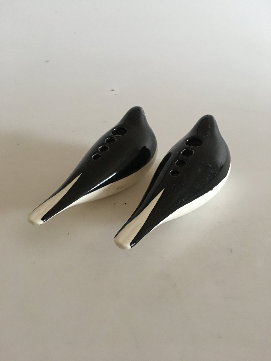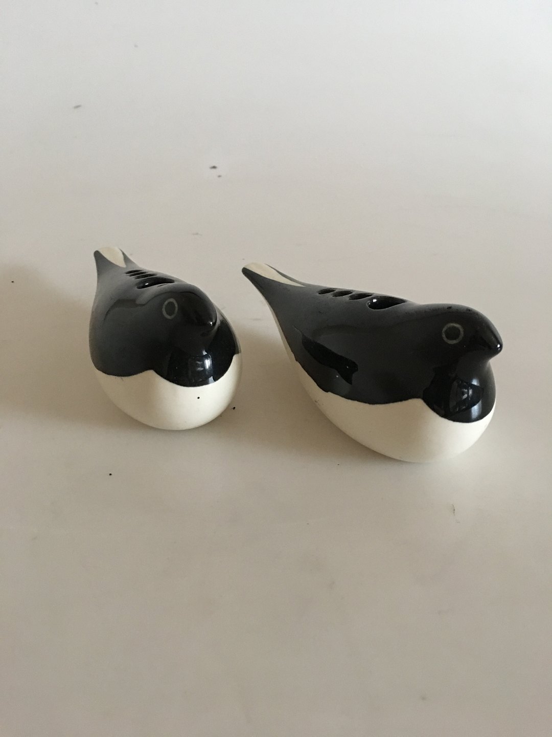 Aluminia Columbine Set of Two Swallow Vases No.2763. The Swallow measures 14.5 cm L (5 45/64"). 5 cm H (1 31/32"). In good condition.