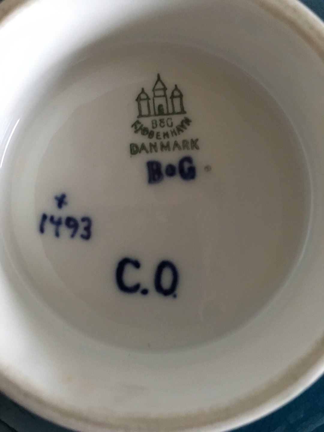 Bing & Grøndahl Cathinka Olsen Stentøjs Skål på Fod med blå glasur. I perfekt stand. 17 cm Ø. 5 cm H.