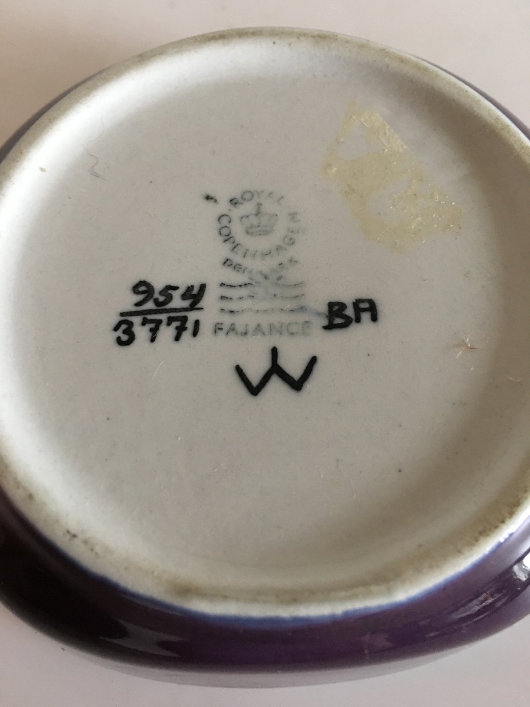 Royal Copenhagen Lille Fajance Skål No 954/3771 af Ivan Weiss. 9 cm Ø. 1 Sort, Í fin stand.