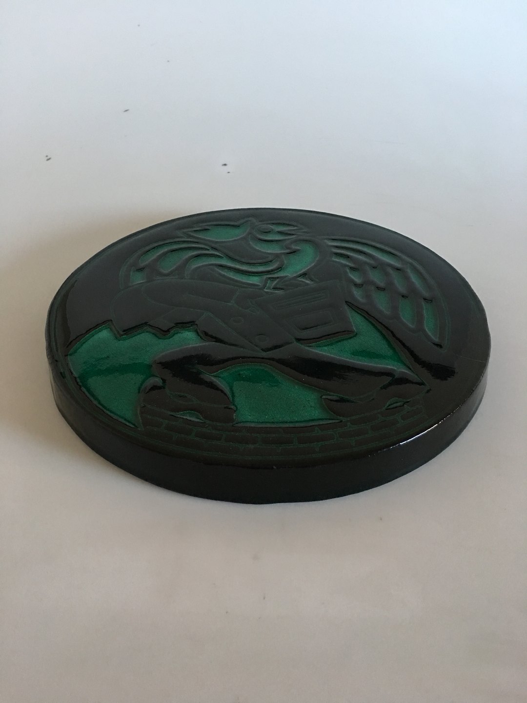 Royal Copenhagen Henry Heerup Stoneware Relief No 22227. Green and Black Pattern. 1st Quality in perfect condition. 28 cm dia (11 1/32")